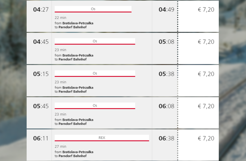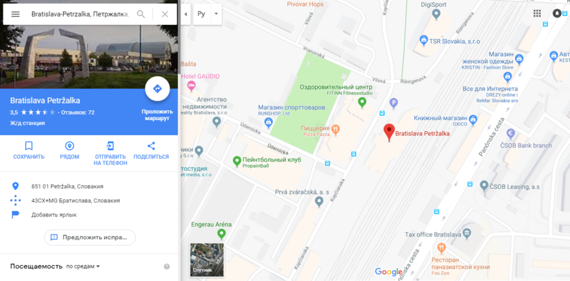 Отправление не от Главного вокзала Братиславы, а от станции Bratislava-Petrzalka.