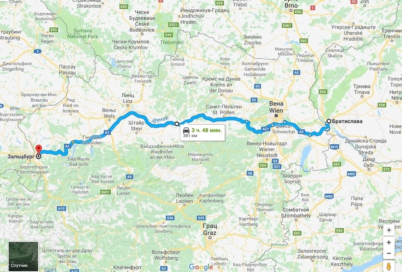 Братислава — Зальцбург — маршрут на карте