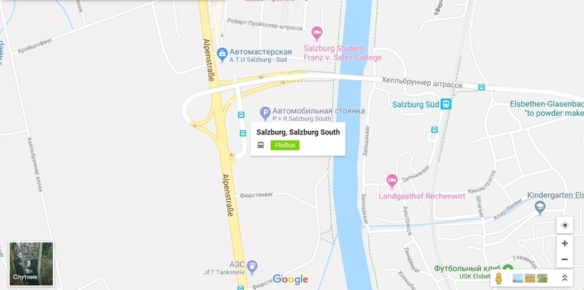 В Братиславе на автобус можно сесть на Центральной автостанции или на остановке Новый Мост. Выйти нужно на остановке Salzburg South.