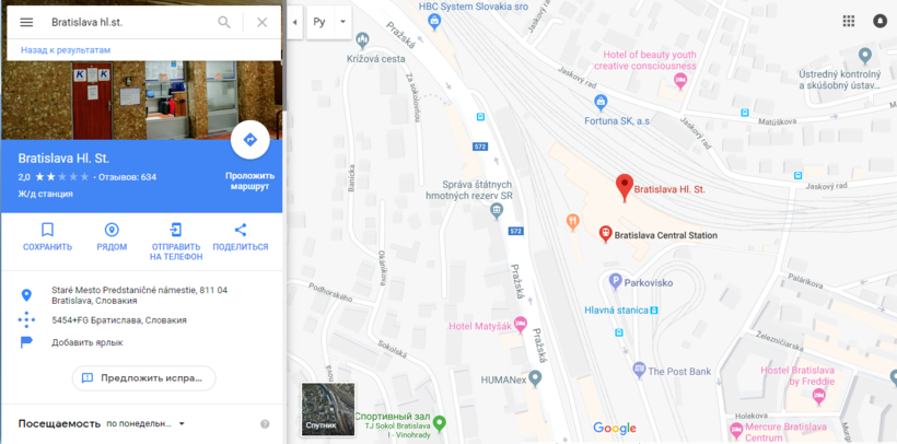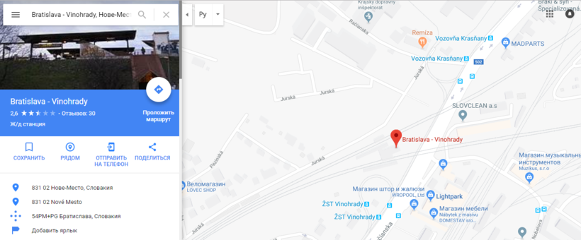 Некоторые поезда делают еще остановку на ж/д станции Bratislava-Vinohrady.