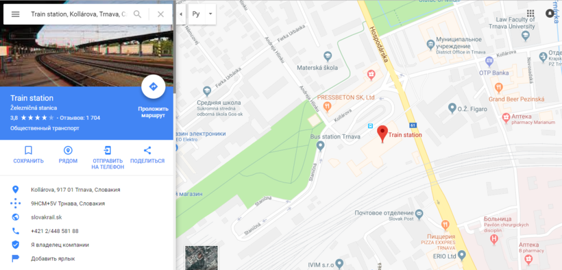 Прибудете вы на автовокзал Трнавы. Он находится недалеко от центра города и от ж/д вокзала, по адресу Kollárova 570/36.