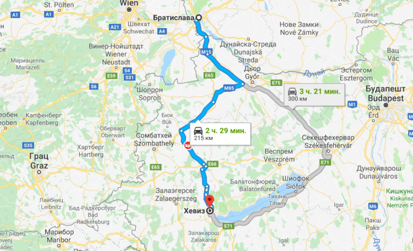 Словацкую столицу и венгерский Хевиз разделяют всего 215 км, а учитывая, что граница между Словакией и Венгрией, как между странами Шенгенского соглашения, условная, такое расстояние на машине можно проехать всего за 2,5 часа.