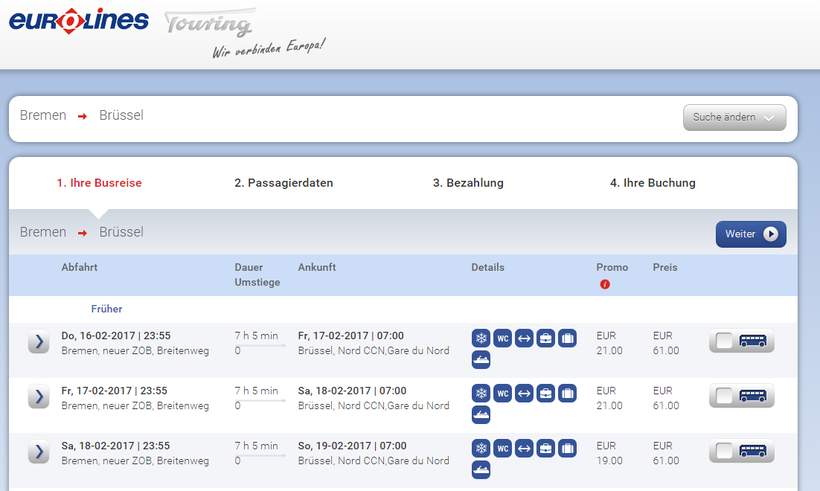 Обычная цена билетов – около 60 евро. Впечатляет правда? А вот теперь делаем ход конём! Если покупать билеты заранее, то можно наткнуться на такую замечательную вещь, как промоакция. В общем, я заплатил за билет от Бремена до Брюсселя всего 17 евро. Как сказал бы известный герой Властелина Колец: «Нельзя просто так взять и не купить билеты за 17 евро!»