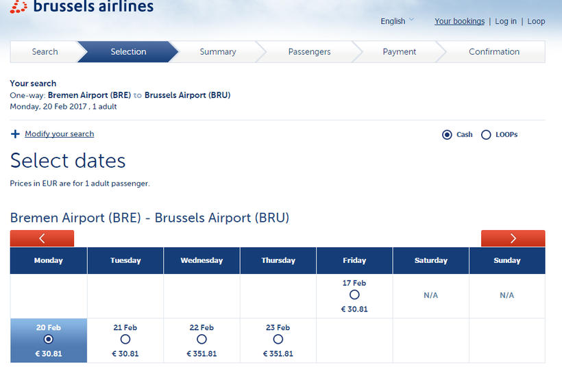 Вот такое расписание висит на сайте «Brussels Airlines».