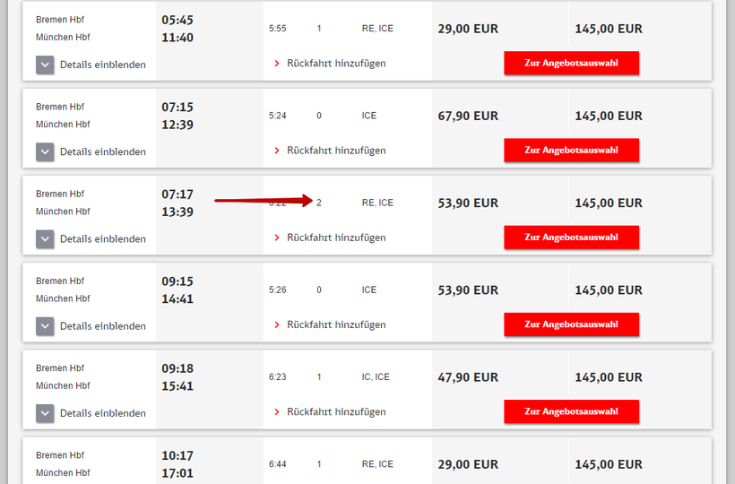 Я чуть было не решился ехать именно этим путём! В конце концов, меня остановило только то, что даже при самых удачных обстоятельствах нужно было провести в поезде как минимум 5 с половиной часов. Мне хотелось как-то побыстрее, поэтому я предпочёл самолёт. В целом же, добраться из Бремена в Мюнхен на поезде не сложно. Центральные ЖД вокзалы этих городов связывает несколько прямых рейсов, но, при желании, можно добраться и с пересадкой, например через Ганновер или Гамбург. Для Германии характерны единые проездные билеты, которые действуют на весь маршрут следования. То есть, даже если вы едите с пересадкой, то не надо покупать отдельные билеты на каждый поезд, достаточно одного. По маршруту Бремен – Кёльн ходит много разновидностей поездов, это и скоростные ICE (InterCityExpress) и региональные RB (Regional Bahn), подробнее о них можно узнать вот здесь.