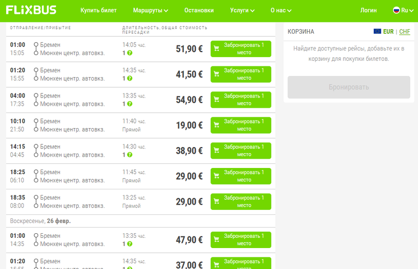 Можно покупать билеты на вокзале, но лучше всего покупать билеты на официальном сайте «Flixbus», тем более он поддерживает русский язык и очень удобно устроен.