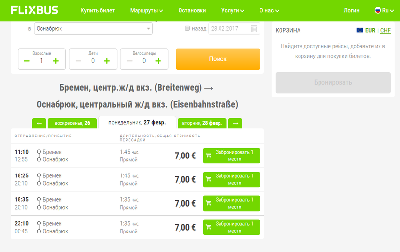 Вот скриншот с русскоязычной версии сайта «Flixbus». Можете сами оценить – всё просто и понятно.