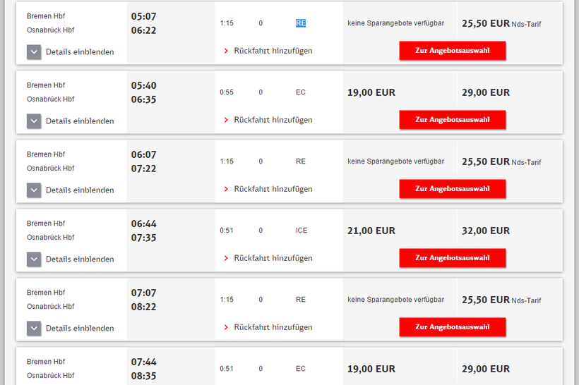 На сайте немецких железных дорог можно посмотреть расписание, даже если вы не собираетесь покупать там билеты.