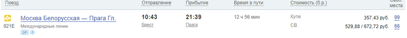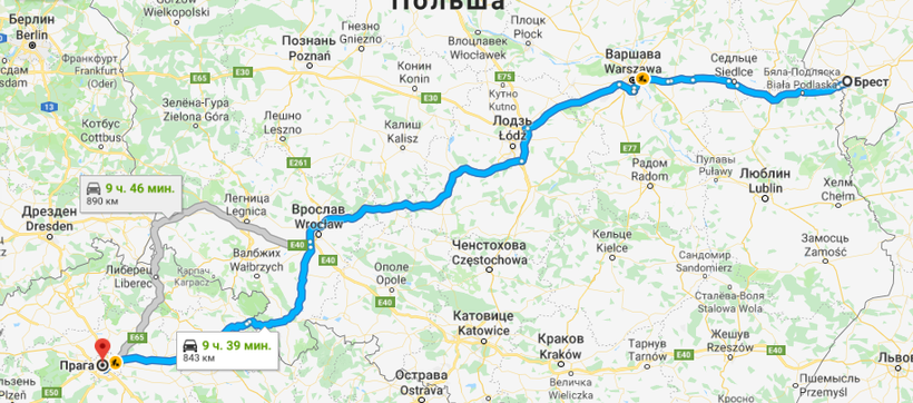 А поездка с пересадкой в Варшаве из Бреста до Праги почти вдвое дешевле.