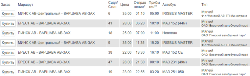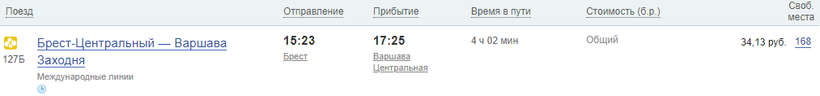 Проезд до Варшавы — от 23 BYN (720 руб или 9 евро).