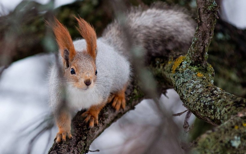 Перед наступлением холодов происходит линька. Рыжая шубка меняется на серую. В зимнее время шерсть белки более густая, чем летом. Это отлично помогает пережить холода. Стоит отметить тот факт, что серая шуба не так сильно заметна, что отлично помогает белке прятаться от хищников. Она может легко сливаться с деревом.