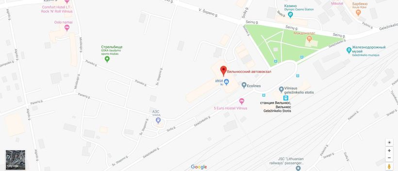 Как видно, отправляются автобусы 3 раза в неделю. Прибывают они на автовокзал Вильнюса (он расположен рядом с железнодорожным):