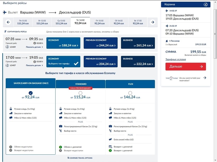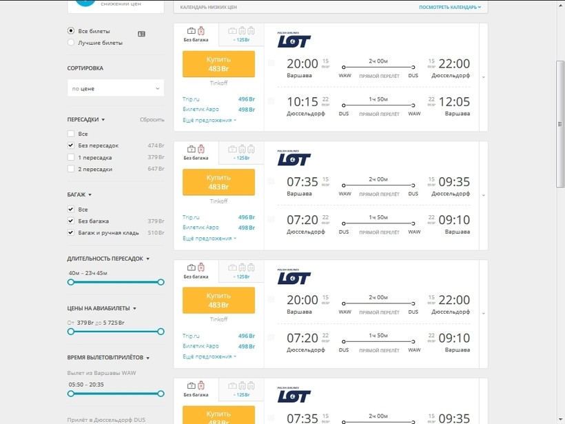 Билеты на рейс из Варшавы в Дюссельдорф в обе стороны стоит 484 белорусских рублей (около 199 €).