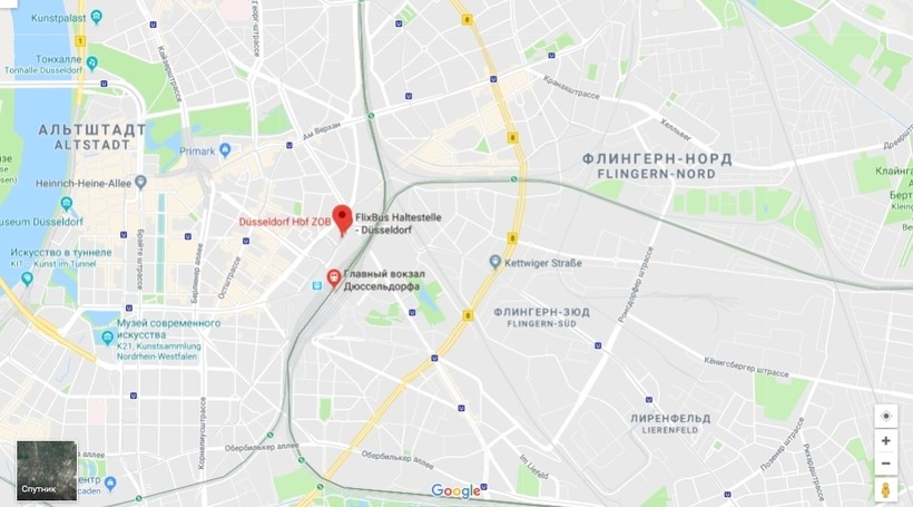 до Центрального автовокзала Дюссельдорфа (улица Ворингер, 140).