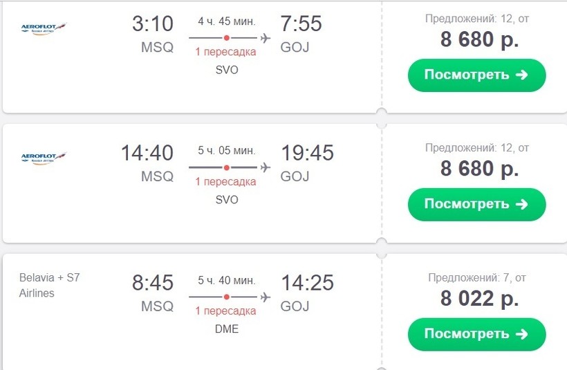 Билеты на самолет до Нижнего Новгорода от 263 белорусских рублей (от 8000 российских рублей).