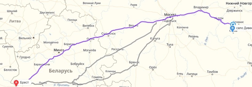 Между этими населенными пунктами полторы тысячи километров. Не советую добираться на автомобиле (потому что примерно 70% трассы в плохом состоянии, жалко машину), но опытом поделюсь, раз уж путешествовала в данном направлении. А ехала я через Минск, Смоленск, Подольск и Владимир. На дорогу ушло 1,5 суток. Делала остановку на ночлег в Смоленске. Бензина на все путешествие ушло примерно сто пятьдесят литров. Про дороги не могу сказать ничего хорошего, нормальные они только в Московской области и в РБ частично. В Смоленской и Нижегородской областях асфальт в плачевном состоянии, да и разметка с отбойниками не везде присутствует. Придорожная инфраструктура развита везде относительно неплохо, по крайней мере заправочных станций по пути хватает. Кстати, цены на бензин в РБ и в России практически одинаковые. В итоге на топливо ушло примерно 7000 российских рублей (230 белорусских рублей). А если вы являетесь гражданином республики Беларусь, то в РФ можете провести без визы до 90 дней.