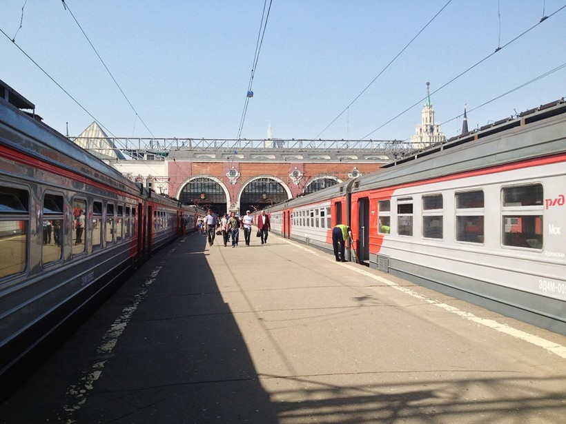 - Электрички. На месте расположения Казанского находятся ещё два вокзала — Ярославский и Ленинградский, а также станция Каланчёвская.