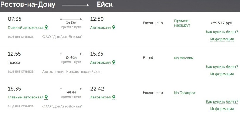 Дальше на маршрутке № 285 от аэровокзала доедете до Главной станции. Расписание автобусов до Ейска и цена билета есть в предыдущем блоке про поезд.