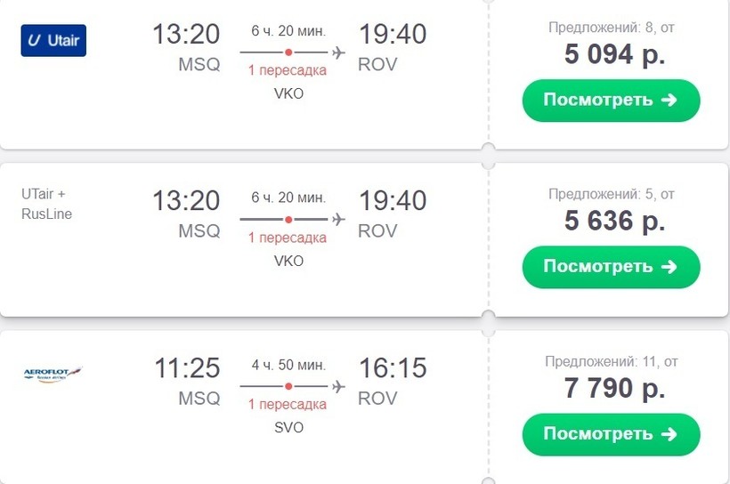 Проездной документ на самолет до Ростова от 168 белорусских рублей (от 5100 российских рублей).
