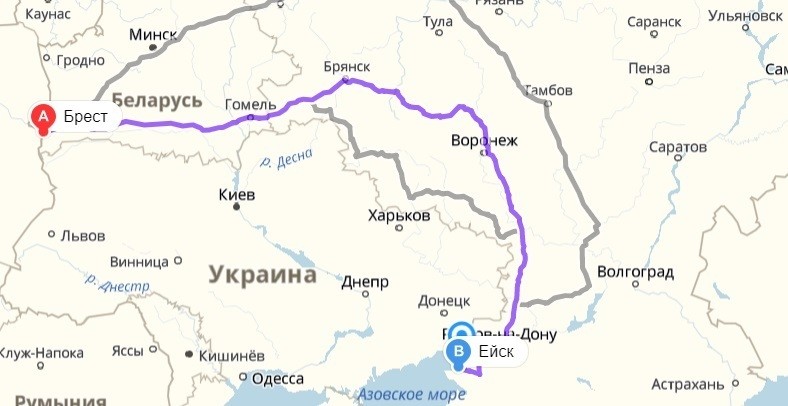 Брест — Ейск — маршрут на карте