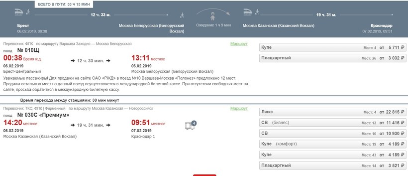Проездные документы на поезд до Краснодара от 214 белорусских рублей (от 6500 российских рублей), а на автобус до Крыма от 30 белорусских рублей (от 900 российских рублей).