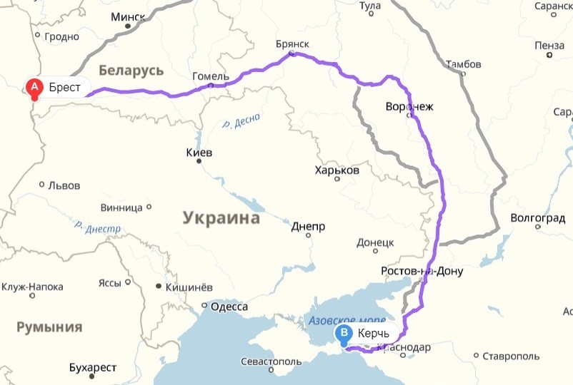 С точностью до километра я вам расстояние до полуострова не скажу, все зависит от того, куда конкретно нужно. Но минимум до Крыма 2300 километров. Я всегда прокладываю маршрут через территорию России. На ночлег останавливаюсь в крупных населенных пунктах — Воронеже и Краснодаре. С жильем тут нет проблем. Если бюджет поджимает, то можно снять и хостел за пятьсот-шестьсот рублей в сутки. Помимо данных городов проезжаю еще Гомель, Брянск и Ростов-на-Дону. Инфраструктура везде налаженная, заправочных станций и различных столовых по пути полно. Об этом беспокоиться не стоит. Единственный момент: в Брянской области плохие дороги, ямы и выбоины. Напряженный трафик бывает только в Краснодарском крае. Что касается моста через Керченский пролив, то проезд по нему бесплатный. Его длина — восемнадцать километров. В самом Крыму дороги вполне сносные, в прошлом году начался их активный ремонт.