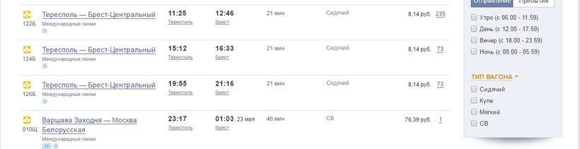 - И еще билеты можно покупать на сайтах польской и беларусской железных дорог.
