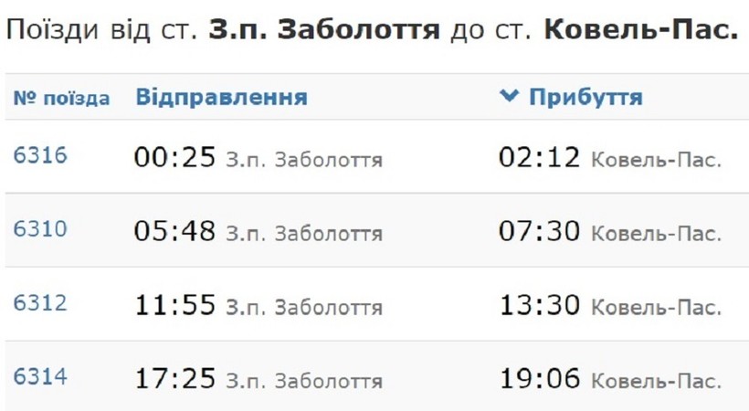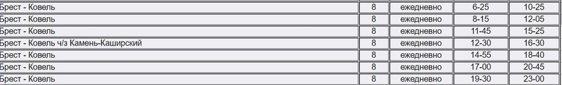 А вот расписание в Ковель.