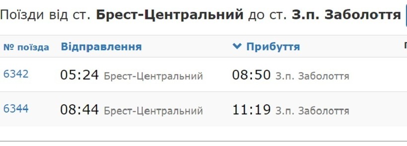 Предлагаю самый оптимальный вариант, на мой взгляд. Выезд со станции Брест-Центральный в половину шестого утра, затем в полдень нужно пересесть до станции Ковель-Пассажирский и вечером на поезд в направлении станции Луцка. В Заболотье пешеходный пункт пропуска через границу, фактически нужно выйти с одного поезда и через сто метров сесть в другой.