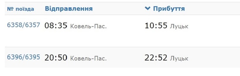 В Луцк ездит всего два поезда с Ковеля, вот расписание.