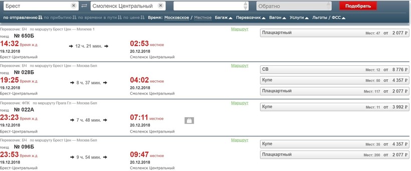 - плацкарт — от 2000 рублей (75 рублей Белоруссии);