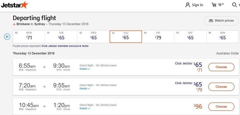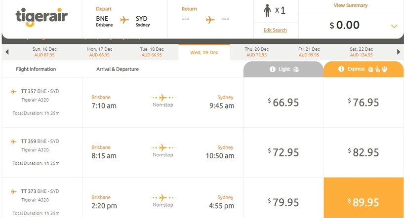 Кроме скорости и комфортности авиаперелету как варианту для путешествия из Брисбена в Сидней можно поставить пятерку и за цены. Билет можно купить даже за 65-66 австралийских долларов (48 долларов США). Самые бюджетные компании Jetstar и Tigerair.