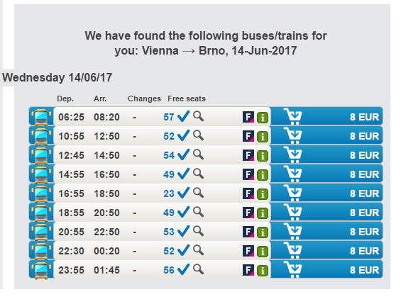 Автовокзал Вены, где можно сесть на автобус в Брно, находится рядом с железнодорожной станцией.