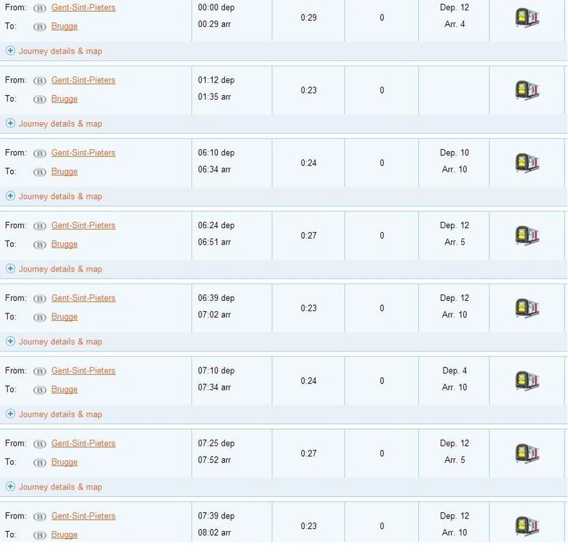 Поезда до Брюгге ездят с шести утра до часа ночи. Время удобное подобрать не сложно, так как за 1 час предлагается несколько отправлений. Все рейсы прямые, отправляются с вокзала Gent-Sint-Pieters.