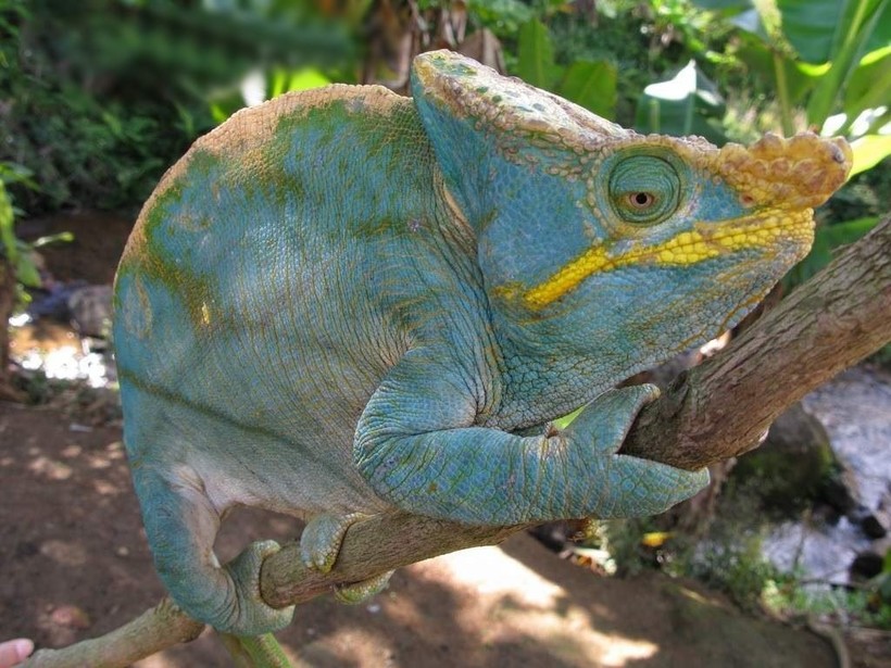 Раньше мне казалось, что хамелеон может стать любого из существующих цветов. На самом деле все зависит от конкретного вида этой рептилии. Тот же йеменский хамелеон в спокойном состоянии будет только зеленого цвета. Если он испугается или разозлится, то поменяет цвет на черный, да еще и покроется желтыми или зелеными пятнами.