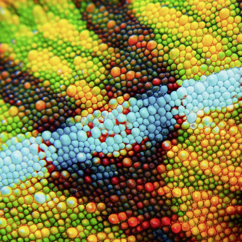 Происходит это благодаря особым клеткам с цветовыми пигментами — хроматофорам. Находятся они в слоях кожи и зависят от нервной системы. Кожа хамелеона прозрачна, поэтому эти клетки хорошо видны: