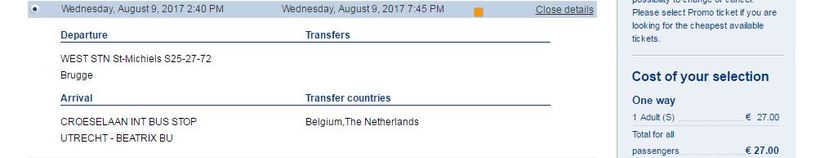 Как доехать из Утрехта в Гаагу я расскажу чуть ниже, в соответствующем разделе. Автобусы у Eurolines довольно комфортабельны, и имеют на борту не только туалет, но еще и интернет.Отправляются автобусы от станции Sint-Michiels: Остановка расположена возле главного железнодорожного вокзала Брюгге. Прибывает же автобус на остановку такую же в плане размещения, но уже в Утрехте: Таким образом, сесть на поезд в Утрехте будет довольно удобно. В пути нужно будет провести около 5 часов, что довольно долго, на мой взгляд. По моему мнению, данный вариант привлекателен только тем, что на нем пересадка одна.