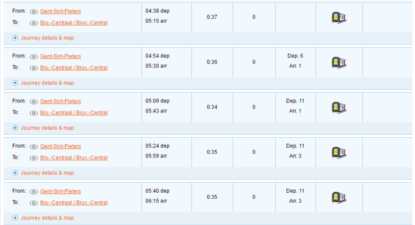 Ниже приведена информация о том, сколько часов вам потребуется, чтобы добраться от Гента до Брюсселя, а также приведена примерная стоимость проезда (средняя цена билета) на том или ином виде транспорта.