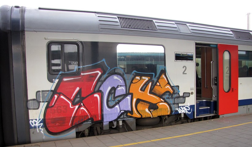 Я заметила, что в Бельгии молодежь любит раскрашивать транспорт. Вот посмотрите, как выглядел мой вагон)).
