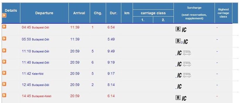 Прямых поездов всего два в сутки: в 05:50 и в 14:45. Первый отправляется от ЖД вокзала Дели в Будапеште.