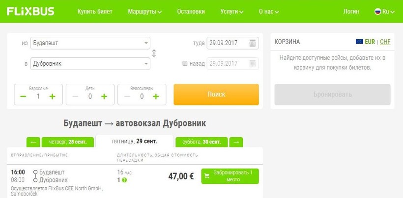 Ежедневно есть только один рейс этого перевозчика, да и то с пересадкой в Загребе. Особого выбора транспорта на этом маршруте нет, поэтому в данном случае этот вариант почти отличный. Ехать 16 часов, это вместе с пересадкой. Но автобусы очень удобные, с интернетом, розетками и туалетом. Выезды в 16:00 с вокзала Неплигет в Будапеште, а прибытие – на автовокзал Дубровника.