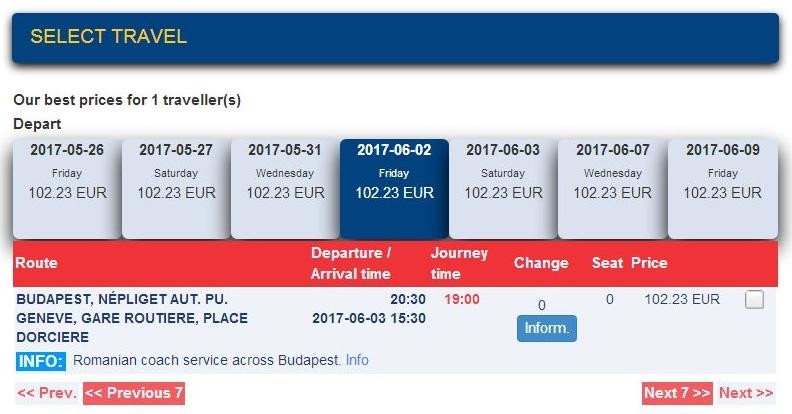 Прямые автобусы до Женевы есть, но они ходят только по средам, пятницам и субботам. Обслуживает маршрут компания Евролайнс, точнее, ее венгерское представительство Volanbusz. Отправление – от автовокзала Nepliget (Üllői út 131) в полдевятого вечера. Все бы ничего, автобусы современные, с вайфаем и кондиционером. Но ехать 19 часов! В общем, я бы не выдержала столько, наверное. Приезжает Volanbusz на автовокзал Женевы.