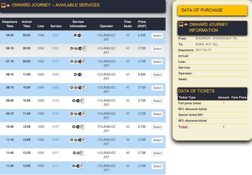 Как я поняла, Volanbusz в Венгрии – это тот же известный по всей Европе перевозчик Eurolines, только название местное. Он довольно часто ездит между Будапештом и Эгером, каждые 30 минут-1,5 часа. Рейсы есть с шести утра почти до одиннадцати вечера. Автобусы современные, удобные, красивые, с бесплатным вайфаем и кондиционером. Выезжают они с автовокзала в Будапеште под названием Stadion, который находится по адресу Somogyi út 35. Через 2-3 часа, в зависимости от рейса, автобусы прибывают на автовокзал Эгера (на Barkóczy utca 2).