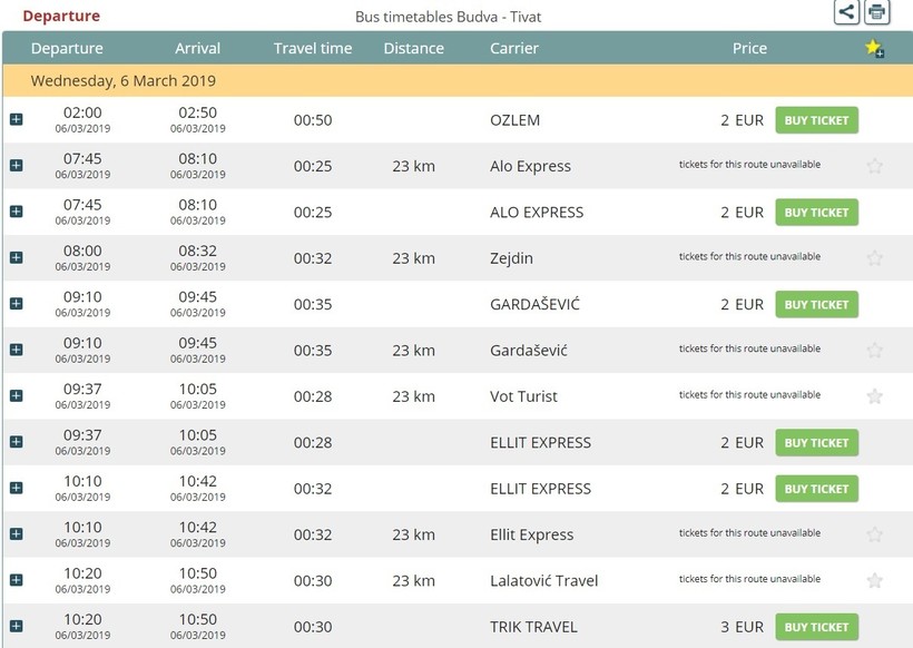 Ниже приведена информация о том, сколько часов вам потребуется, чтобы добраться от Будвы до Тивата, а также приведена примерная стоимость проезда (средняя цена билета) на том или ином виде транспорта.