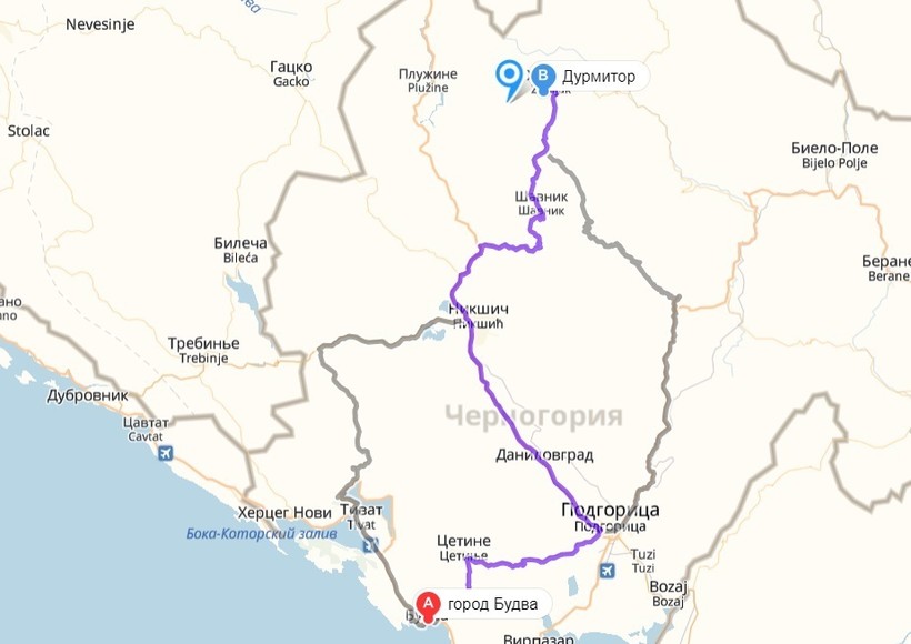 Будва — Дурмитор — маршрут на карте
