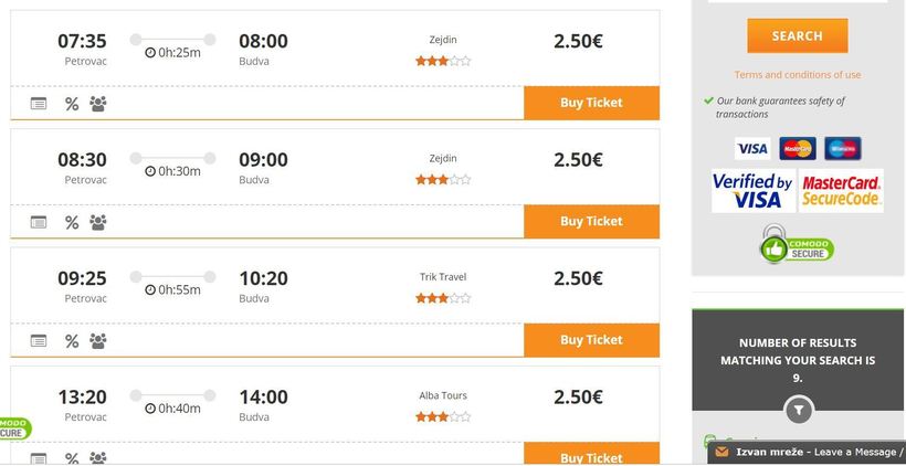 В принципе, учитывая малую длительность поездки, особенных условий и не требуется. Прибывают все автобусы на автостанцию в Будве.