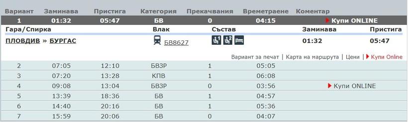 Между этими городами есть 7-8 рейсов в день, из них 3 прямых и 4-5 с пересадкой. В принципе, можно подобрать себе удобный по времени. В зависимости от рейса в пути нужно будет провести от 4 до 6 часов. По этому маршруту ездят разные поезда, подробней про них и про железную дорогу Болгарии можно ознакомиться здесь. Садиться нужно на Главном вокзале Пловдива по адресу булевард „Христо Ботев“, 46.