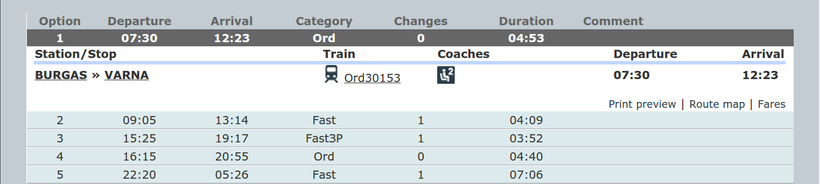 Вот скриншот расписания по данному направлению с сайта болгарских железных дорог, там есть английская и болгарская версии: