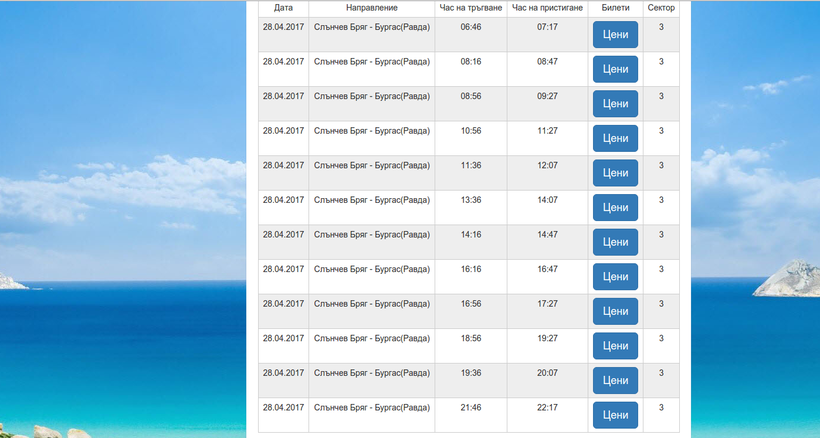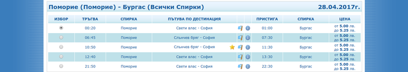Сайт у нее тоже на болгарском, но понять в принципе можно. Задаем пункты отправления и прибытия, потом дату поездки и вот что получаем: