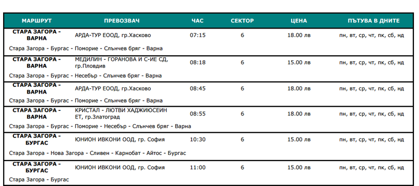 Подробно расписание можно посмотреть непосредственно на южном автовокзале Бургаса, откуда и проходит отправка.